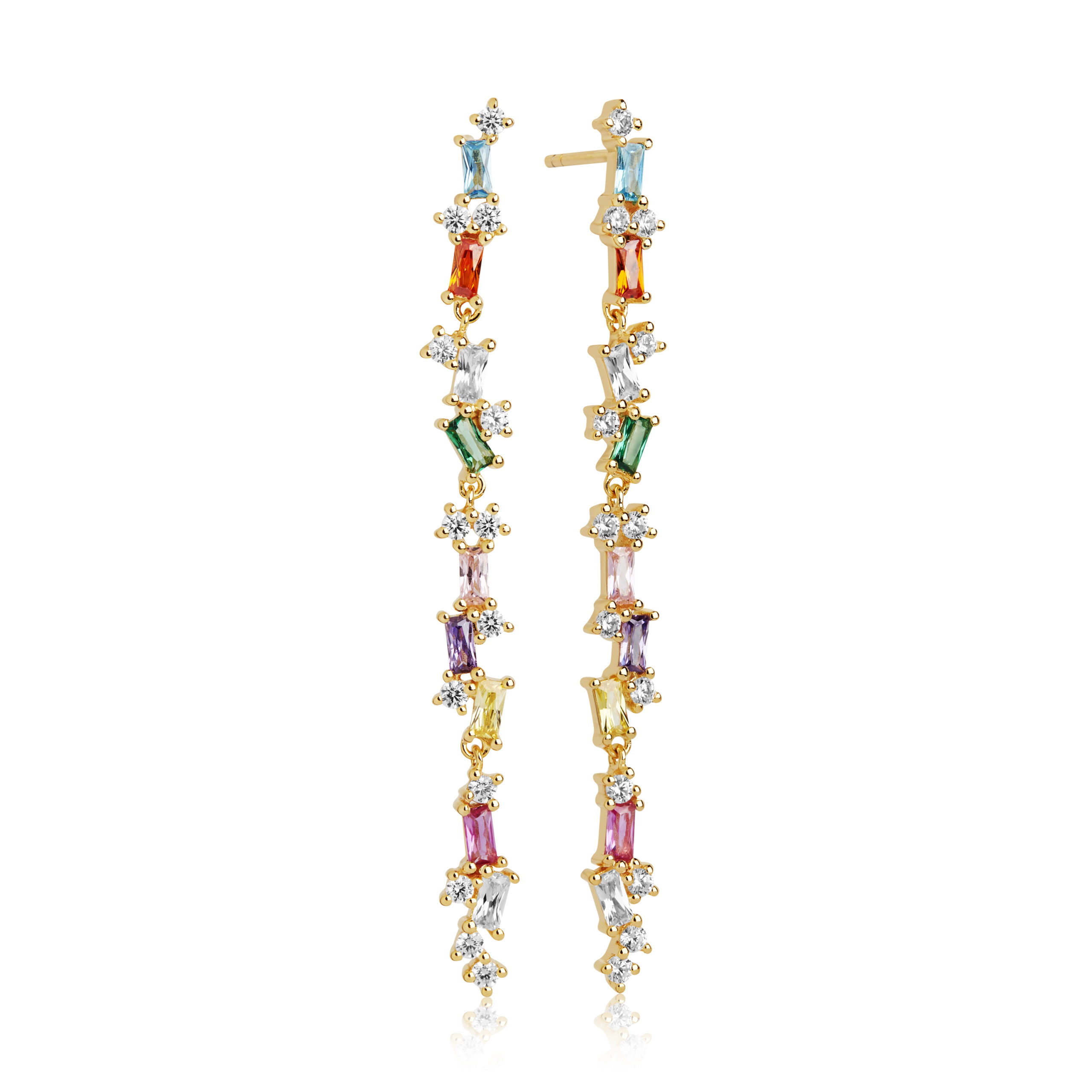 Oorhangers van 18 karaats vergulde 925 Sterling zilver gepolijst oppervlak gezet met verschillende kleuren baguette geslepen zirkonia's